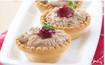 Куриную печень отварить (15-20 минут), обжарить на подсолнечном масле. Лук нарезать кубиками и обжарить на масле. В блендере измельчить до однородной массы печень и лук. Добавьте соль, вермут или бренди. Для красоты паштет можно складывать в тарталетки, используя кондитерский мешок. Украсить клюквенным соусом и петрушкой.