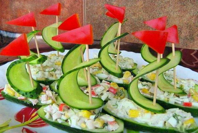 Огурцы помоем, разрежем пополам, ложкой вытащим внутренность.